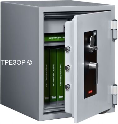Версия с сувальдным ключевым замком. Ещё больше безопасности за разумные деньги. При размещении сейфа в ограниченном по глубине пространстве, прибавьте к указанному в каталоге размеру 42 мм на выступающую ручку ригельной системы.